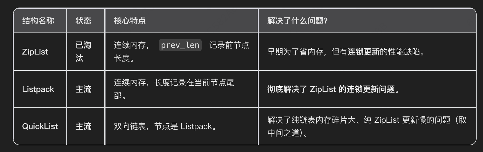 三、深度解析:关键底层结构 - 紧凑列表的进化史 (ZipList → Listpack)