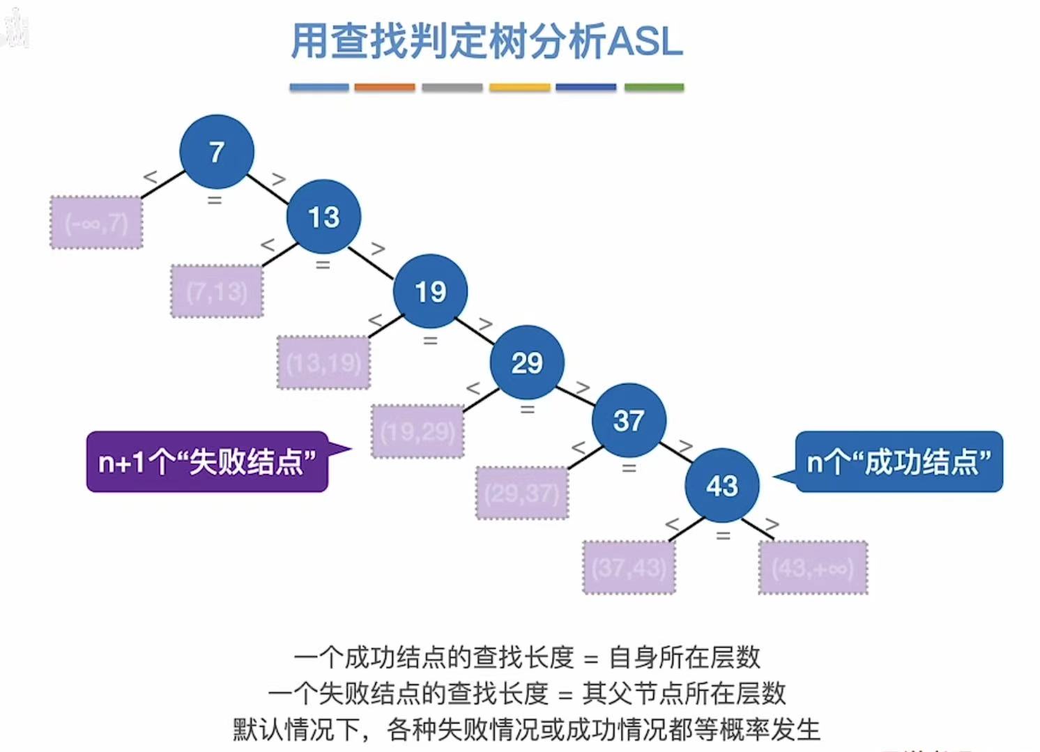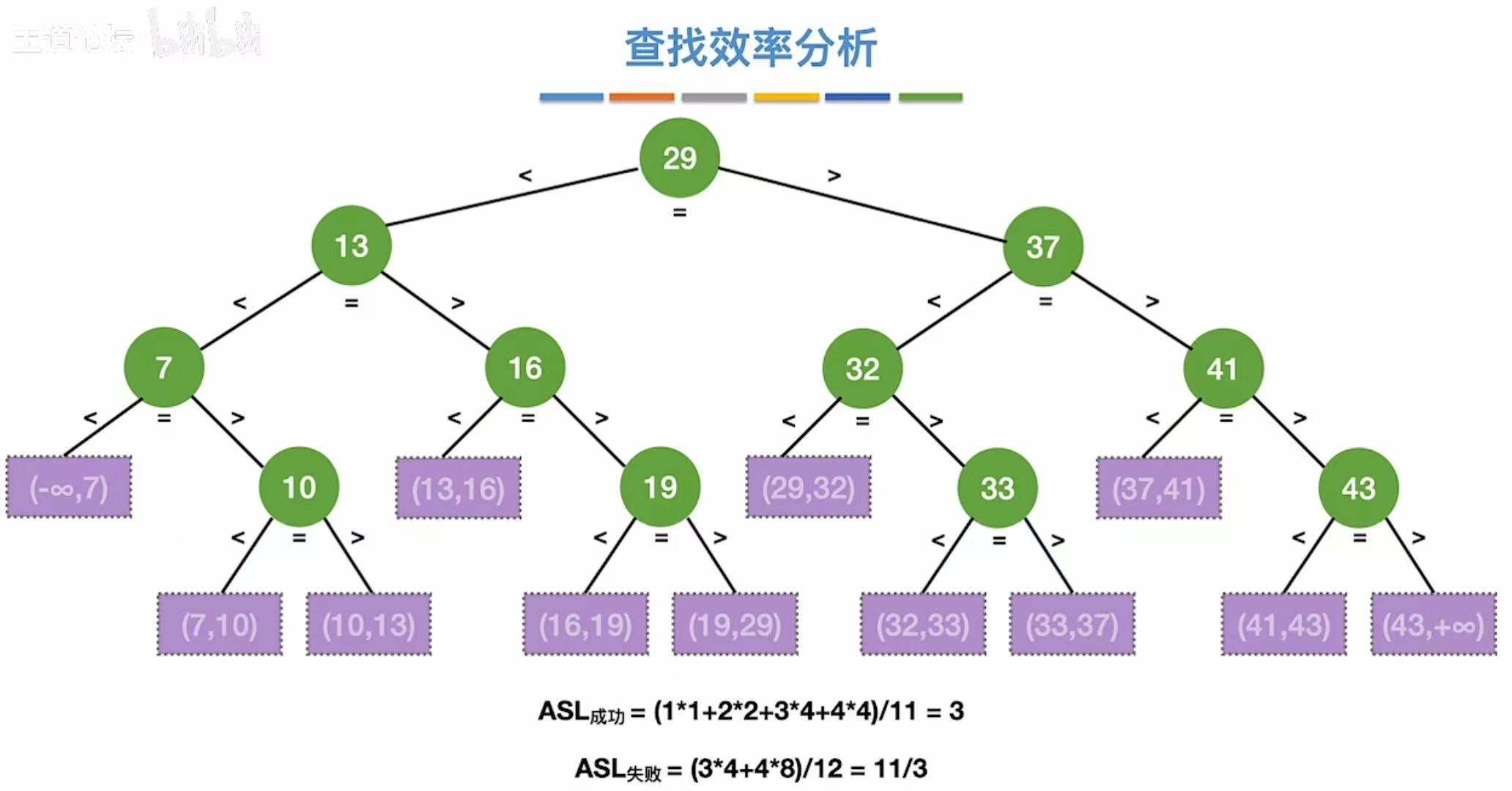 查找失败-->树上没有的数字-->就是每个数字下面的空叶子节点(图中紫色方框) - 左侧ASL:第三层37;第四层4 2;-->因为是对比关键字,所以层数以树中有的数字 为标准
