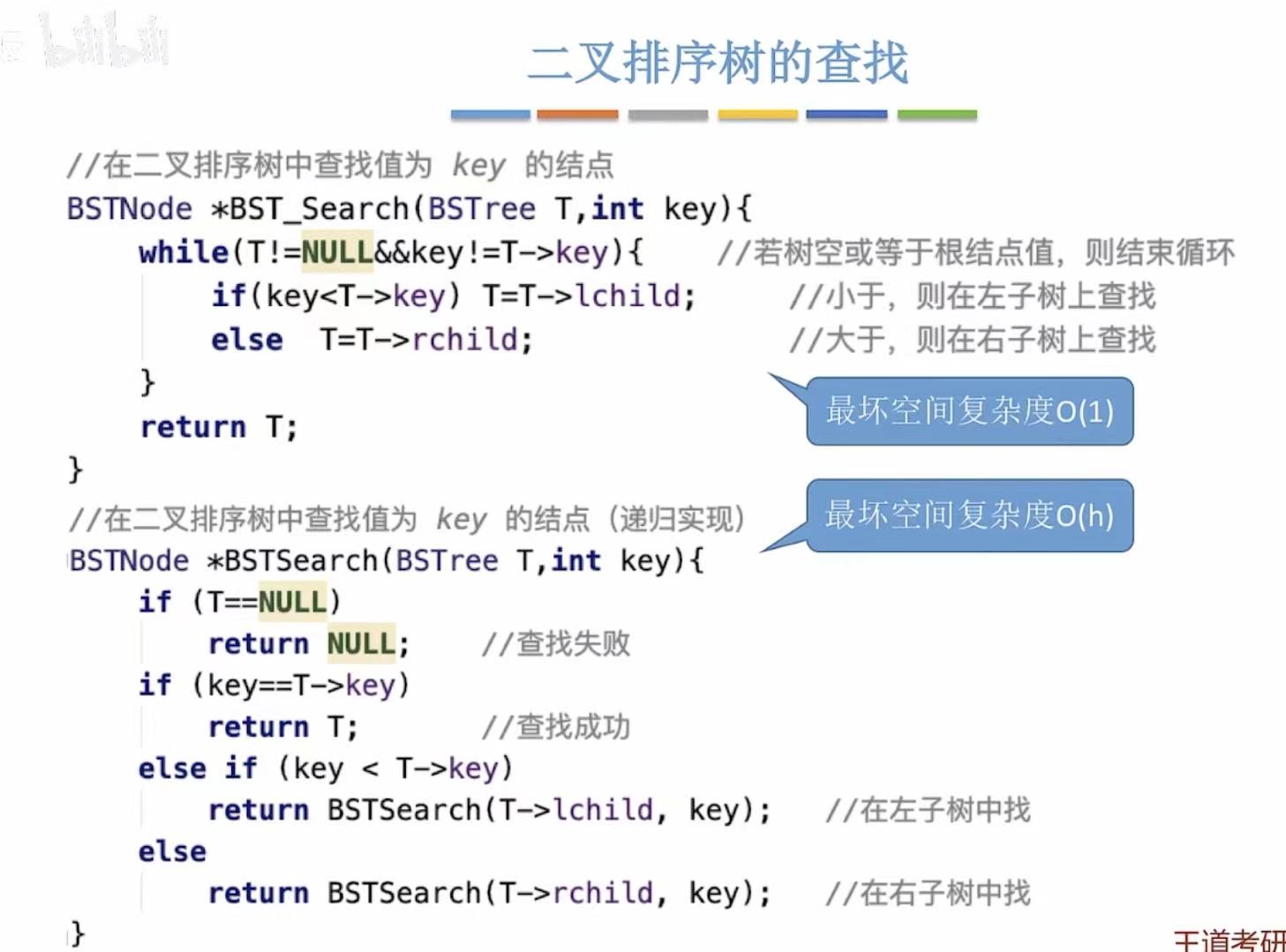 // 在二叉排序树 T 中查找关键字 key 的结点(递归实现)