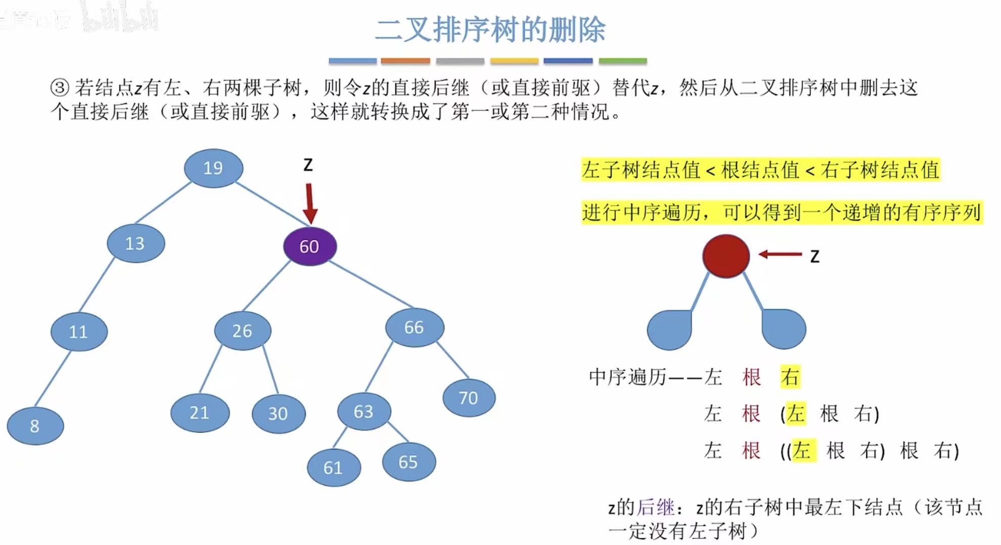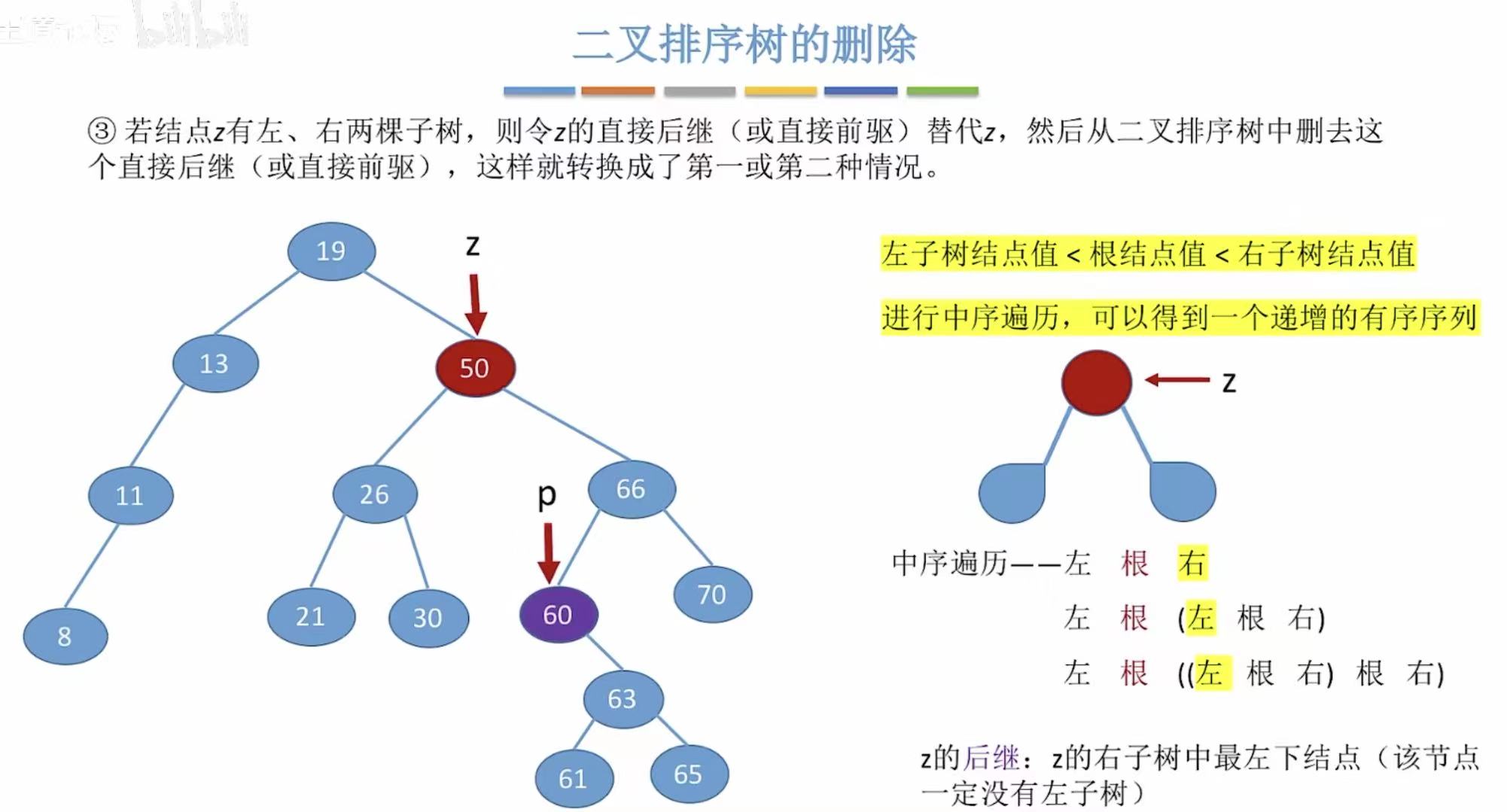比如要删除50,就用它右子树的左孩子来代替自己的位置。
