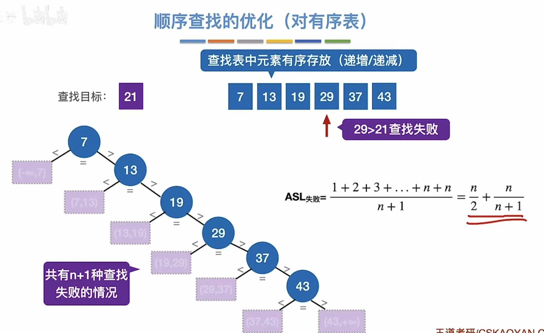 - 失败ASL:遍历到下标为0的数组,就是n+1次对照,就是失败了