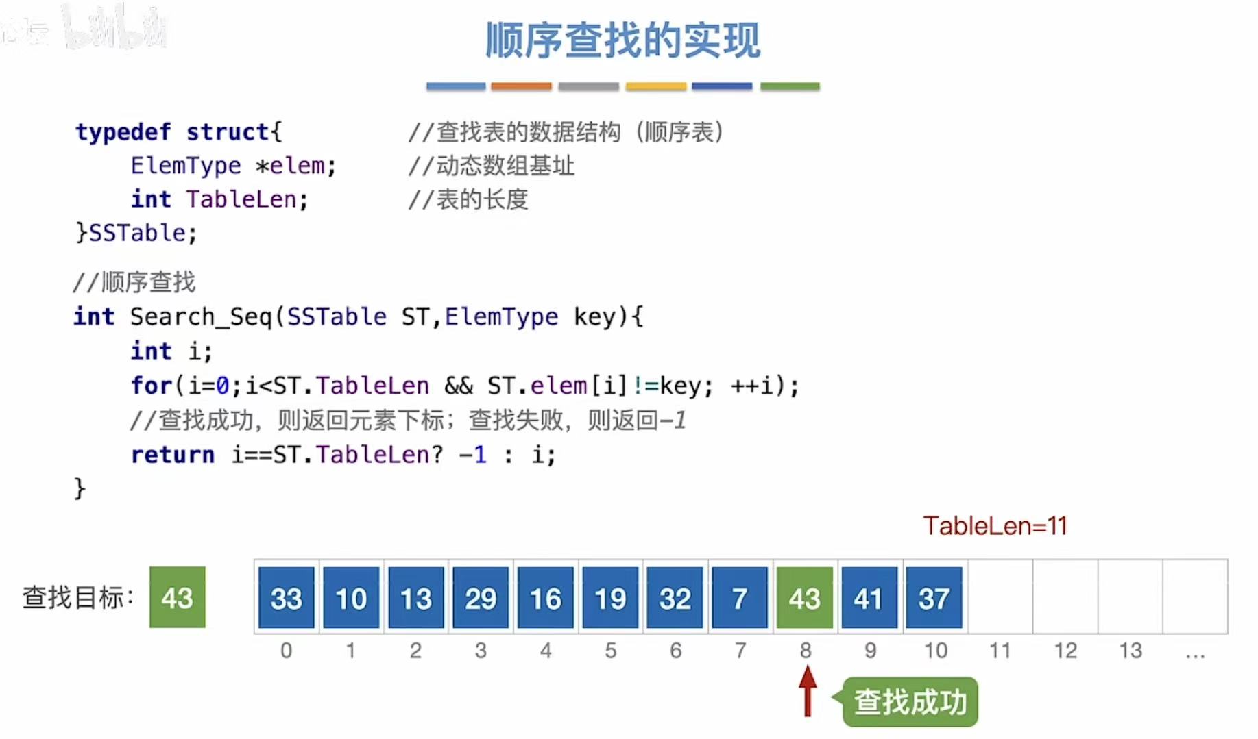// 如果 i == ST.TableLen,说明遍历完所有元素都没找到 → 失败
