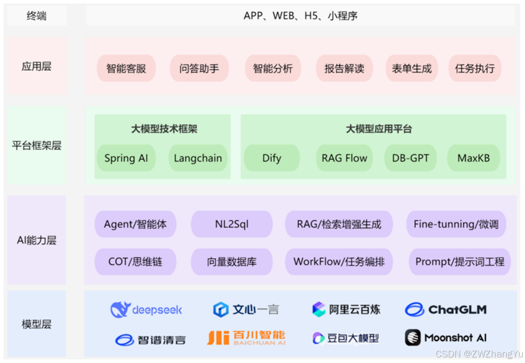 LangChain:用于构建基于大语言模型应用的开发框架,帮助将模型与数据源、工具及业务流程连接起来。