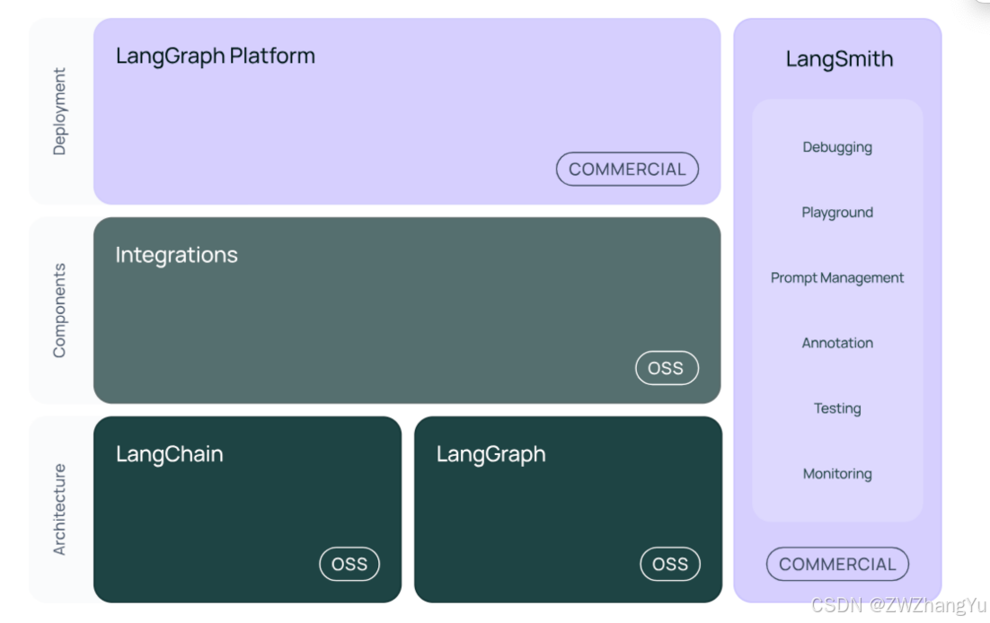 ⽐如:Model I/O、Retrieval、Tool & Toolkit;合作伙伴包 langchain-openai,langchainanthropic等。