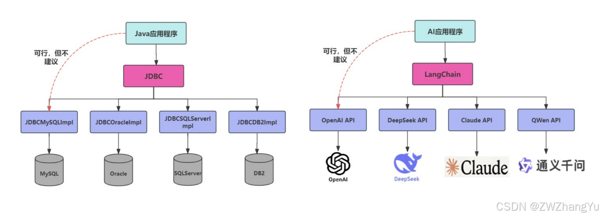 LangChain,可以以统一、规范的方式进行调用,有更好的移植性。