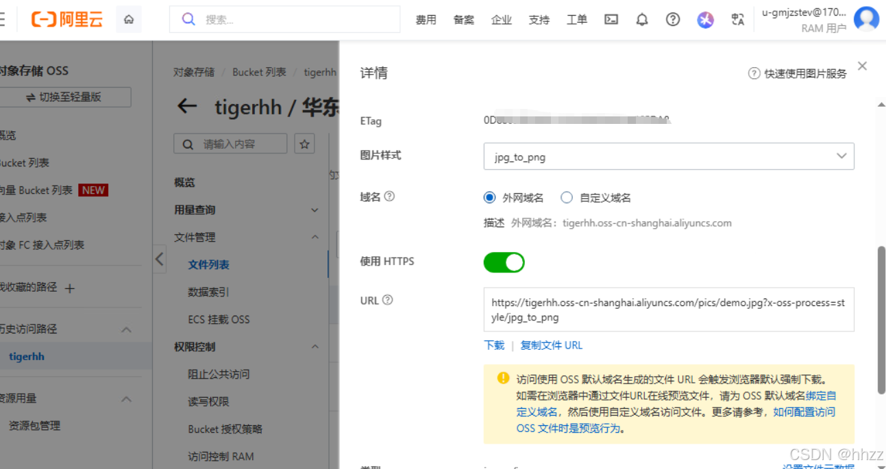 说明:选择图片样式为jpg_to_png,复制文件URL。