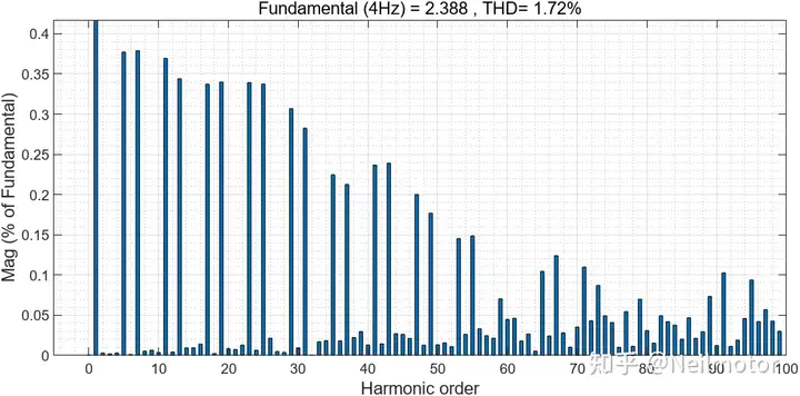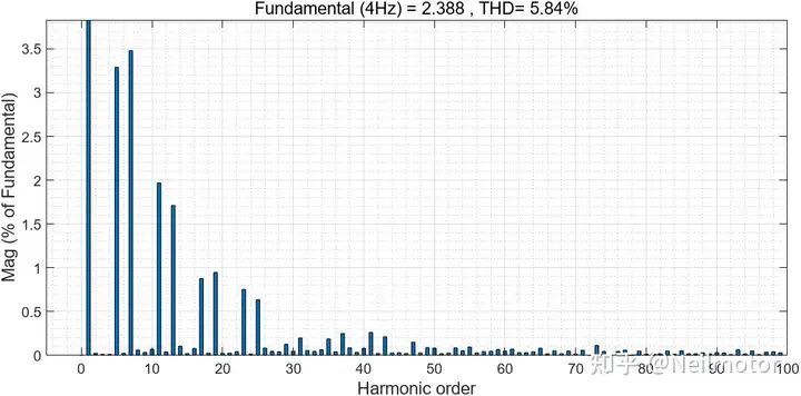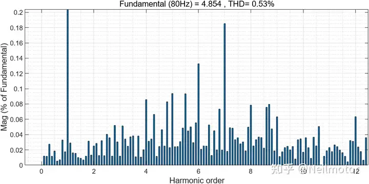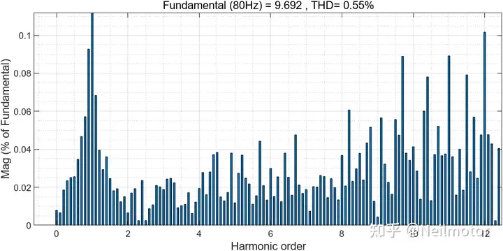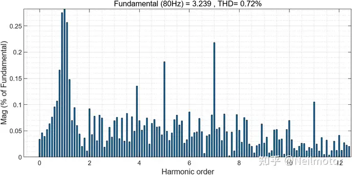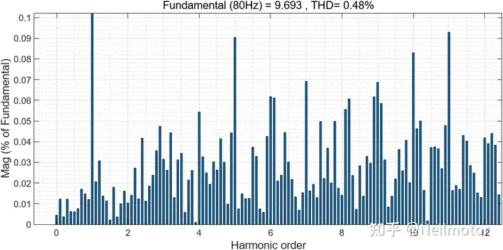 三相电流THD由5.84%降低至1.72%,从上图中也可以看出,三相电流的正弦度明显提升,d轴电流波动-0.15-0.3降低至-0.05-0.2,且d轴保持在给定值0附近