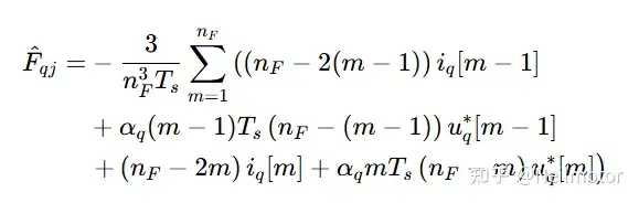 采用代数参数辨识技术,在滑动时间窗口[0,T](T=nF*Ts,nF为窗口长度,Ts为采样周期)内,利用输入输出数据实时计算F的估计值F^。以 q 轴为例,离散化实现公式为: