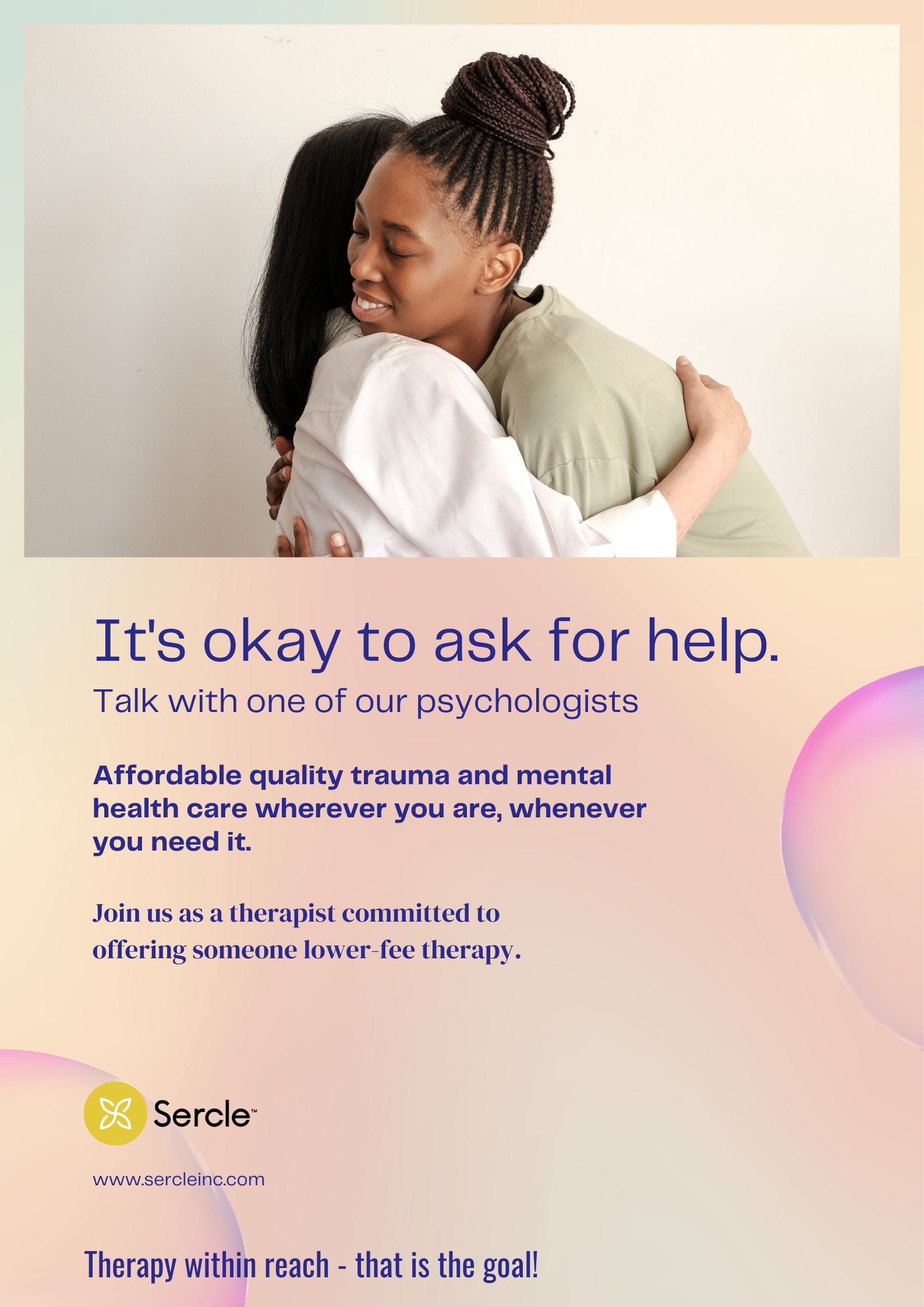 介绍:我们的全球网络是一个免费的平台,旨在将创伤幸存者与提供经济实惠心理治疗的治疗师联系起来。我们为那些负担不起当前市场费用、没有保险或保险不足,且年家庭收入低于50,000美元的客户提供服务。