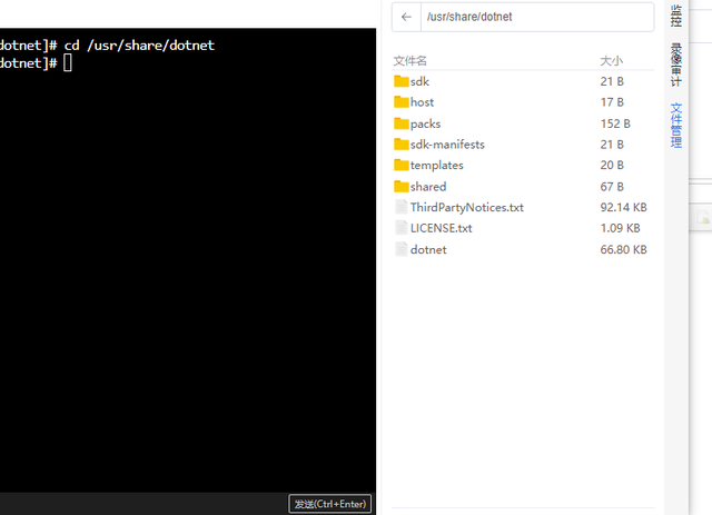 2、进入/usr/share/,创建dotnet目录,下载二进制文件,通过命令或ssl的文件管理上传文件到/usr/share/dotnet目录下。