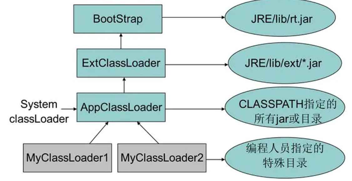 • ⾃定义类加载器:根据⾃⼰的需求定制类加载器。