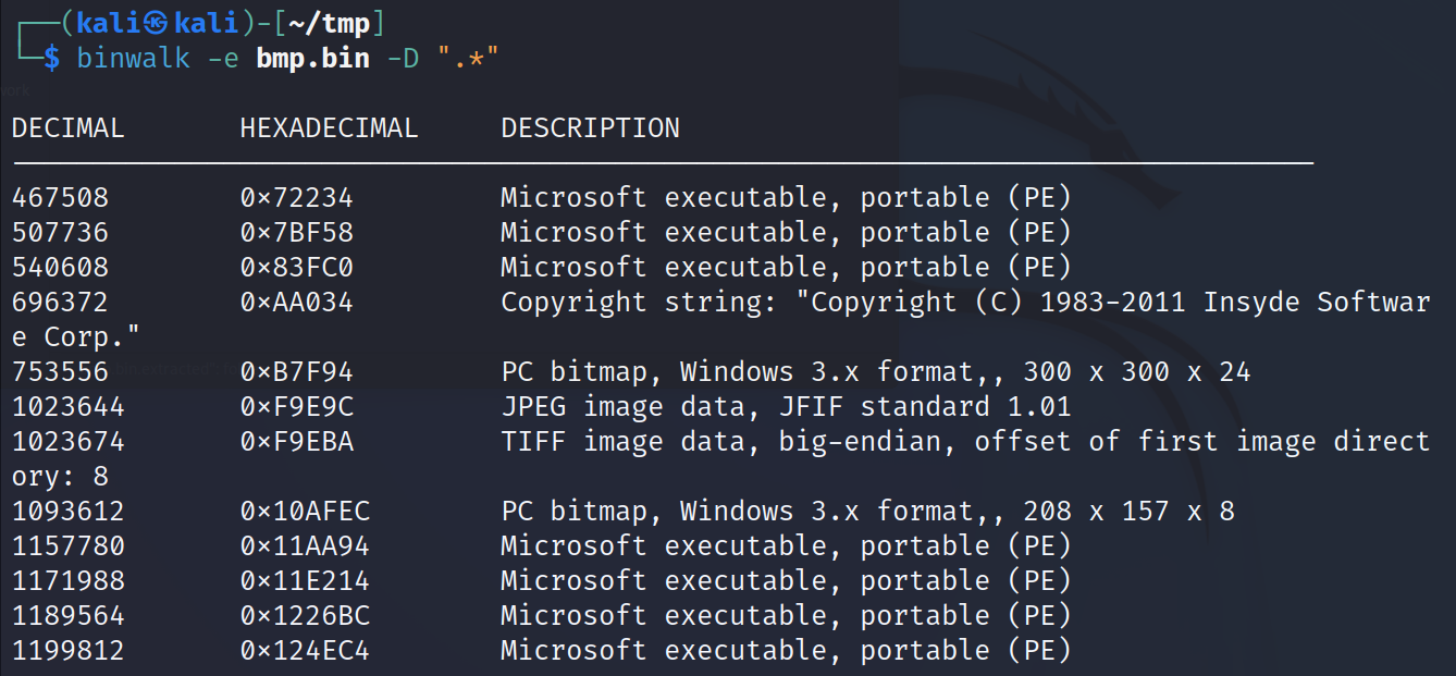 binwalk -e参数只提取某些预定义类型,导致可能跳过很多文件;而-D ".*"强制提取所有识别到的类型,可提取所有检测到的文件。