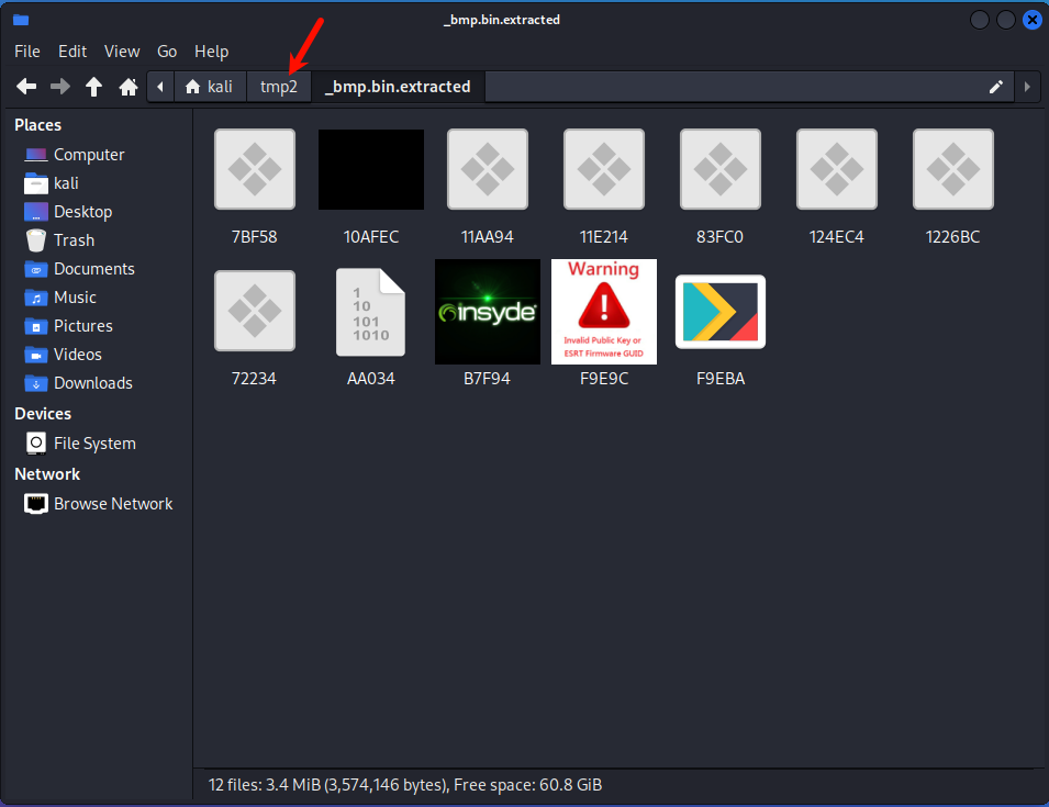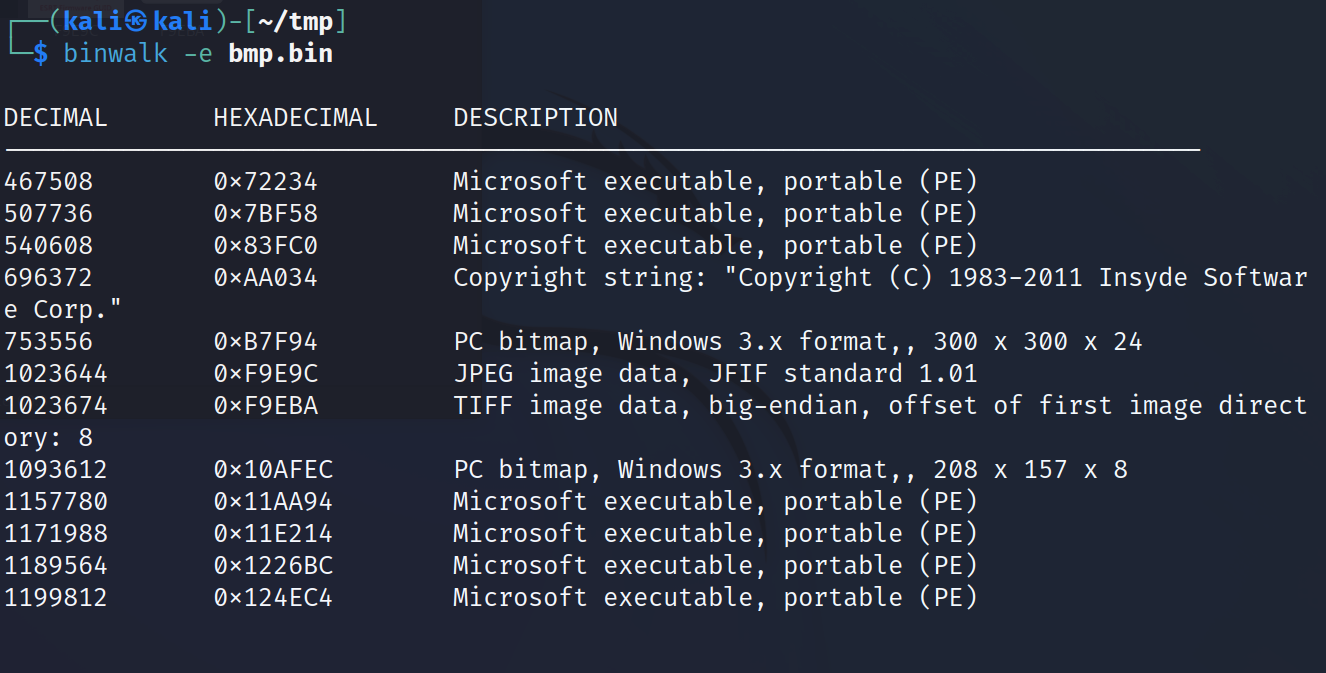 问题描述:笔者在kali-linux环境中使用binwalk工具进行文件分离时,在命令行窗口能显示出该文件的分离结果(如图1),但在当前目录下并没有出现包含分离结果的文件夹,修改操作指令(如图2)后发现在当前目录下可正常输出分离结果,进一步修改操作指令(如图3)可调整输出文件的地址