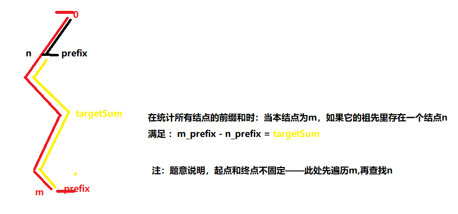 mp[0] = 1;// 初始化:根节点的祖先------其前缀和0. 路径条数为1------方便统计m_prefix == targetSum的情况