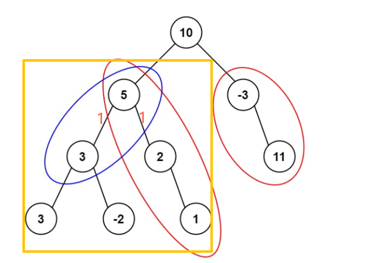 **输入:**root = [10,5,-3,3,2,null,11,3,-2,null,1], targetSum = 8