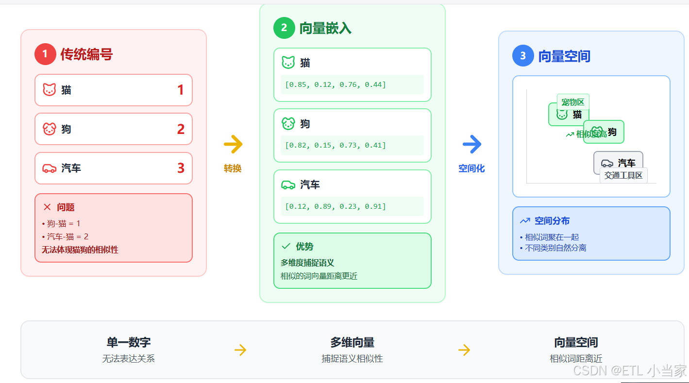 三、向量嵌入如何工作(简化原理)
