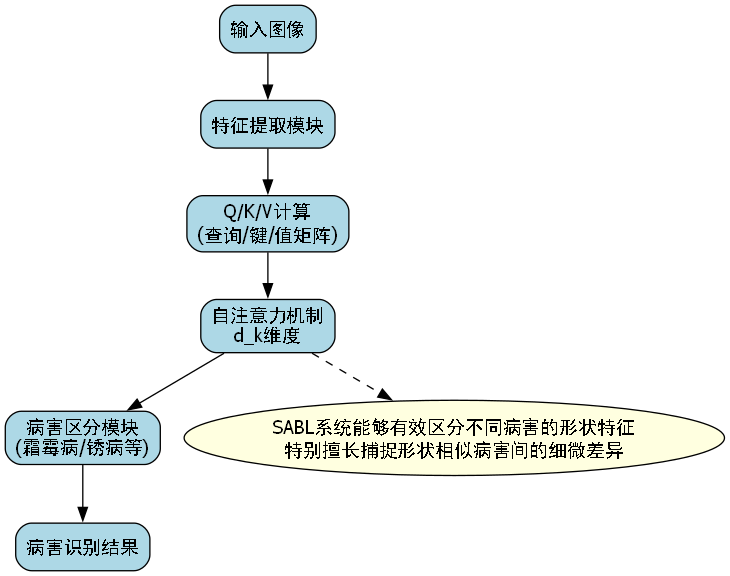 其中,Q、K、V分别代表查询矩阵、键矩阵和值矩阵,d_k是键向量的维度。这个公式计算了每个位置对其他位置的注意力权重,使模型能够自适应地关注重要区域。在我们的应用中,SABL能够有效区分不同病害的形状特征,提高识别准确率。特别是对于形状相似的霜霉病和锈病,SABL能够更好地捕捉它们之间的细微差异。🌿