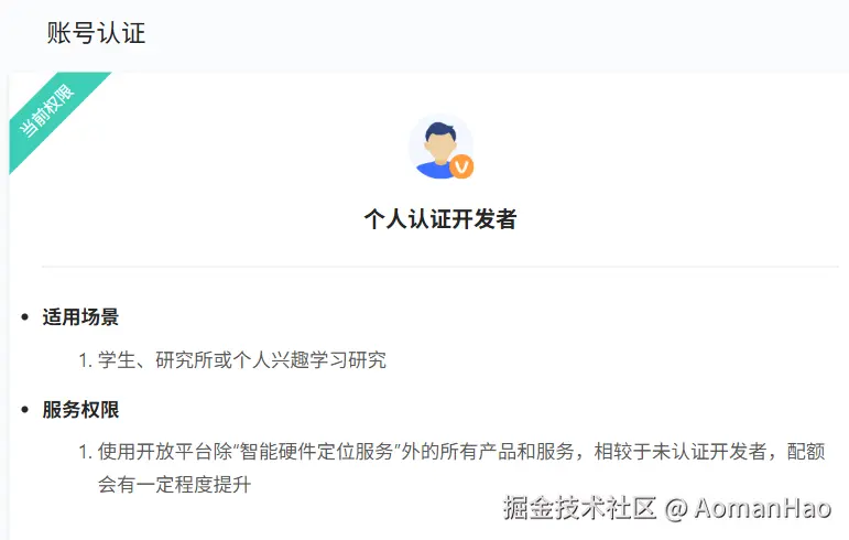 1)注册高德开放平台,注册个人认证开发者