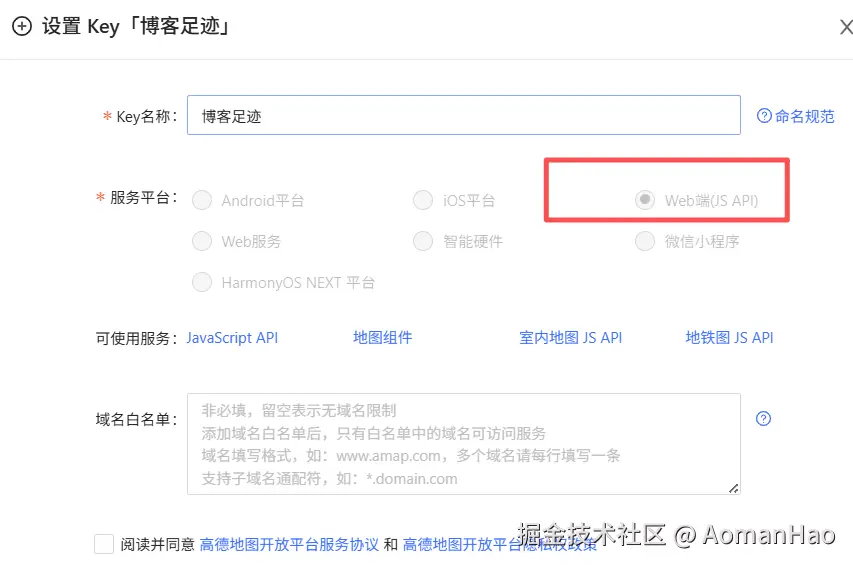 2.1 高德地图 Key 获取: