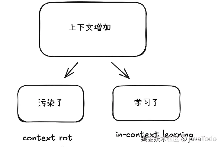 - Context Rot(上下文腐化):当上下文中充满了重复、错误或无价值的信息时,AI会陷入思维定势。这些信息"引入了噪音或误导性的模式",导致AI不断重复同样的错误,性能越来越差。
