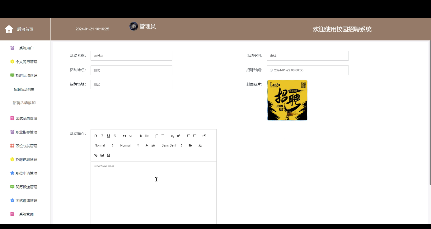 图4.5 招聘活动添加界面图