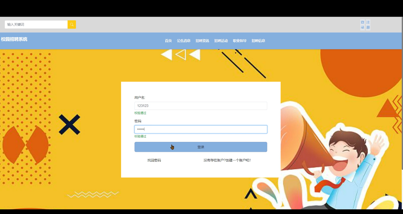 (2)公告信息:显示校园招聘相关的公告和通知,包括招聘会、宣讲会等活动信息。