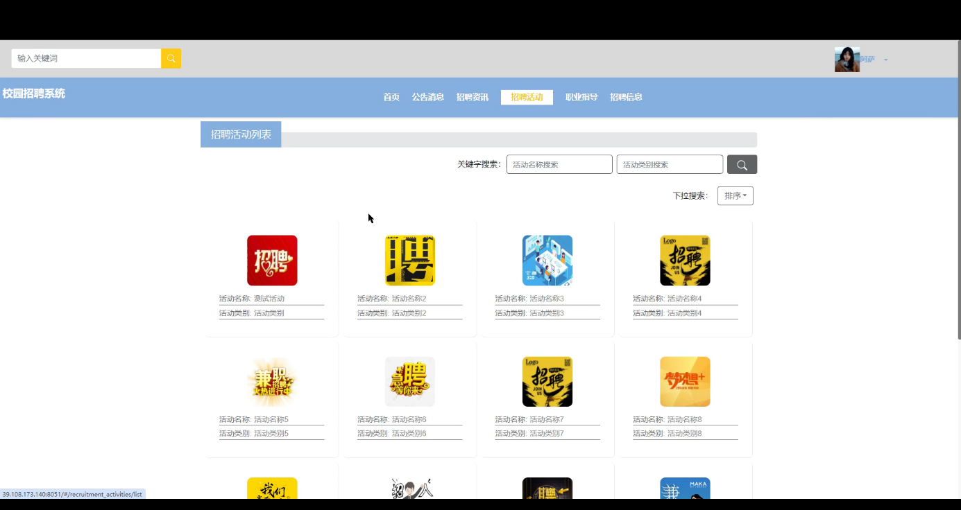 招聘活动:展示即将举办或正在进行的招聘活动,包括时间、地点、参与企业等详细信息。界面如下图所示。