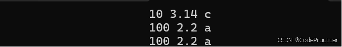 //不需要像C语言使用占位符来指定打印格式,cout,cin会自动识别类型
