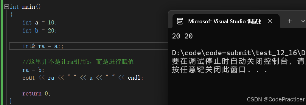 引用在实践中主要用于引用传参和引用作返回值,可以减少拷贝提高效率,改变引用对象的同时可以改变被引用对象。