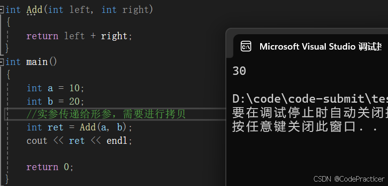 这里传参只是传递了一个整型,拷贝并不会损失多少效率,但是如果是一个大对象呢?例如C中的结构体,拷贝就会付出很大的代价。这里暂时先了解这么多(不好举例)。