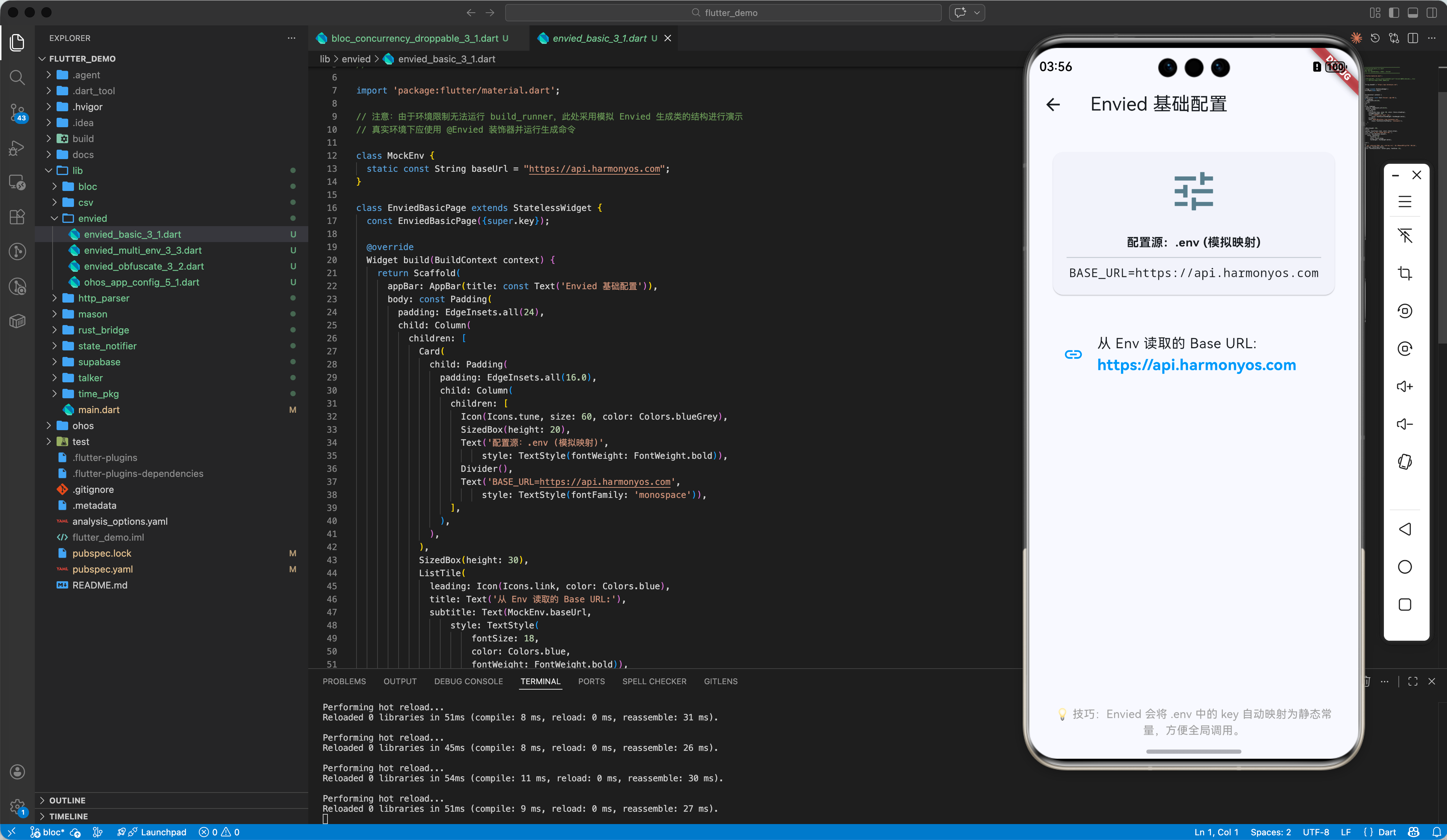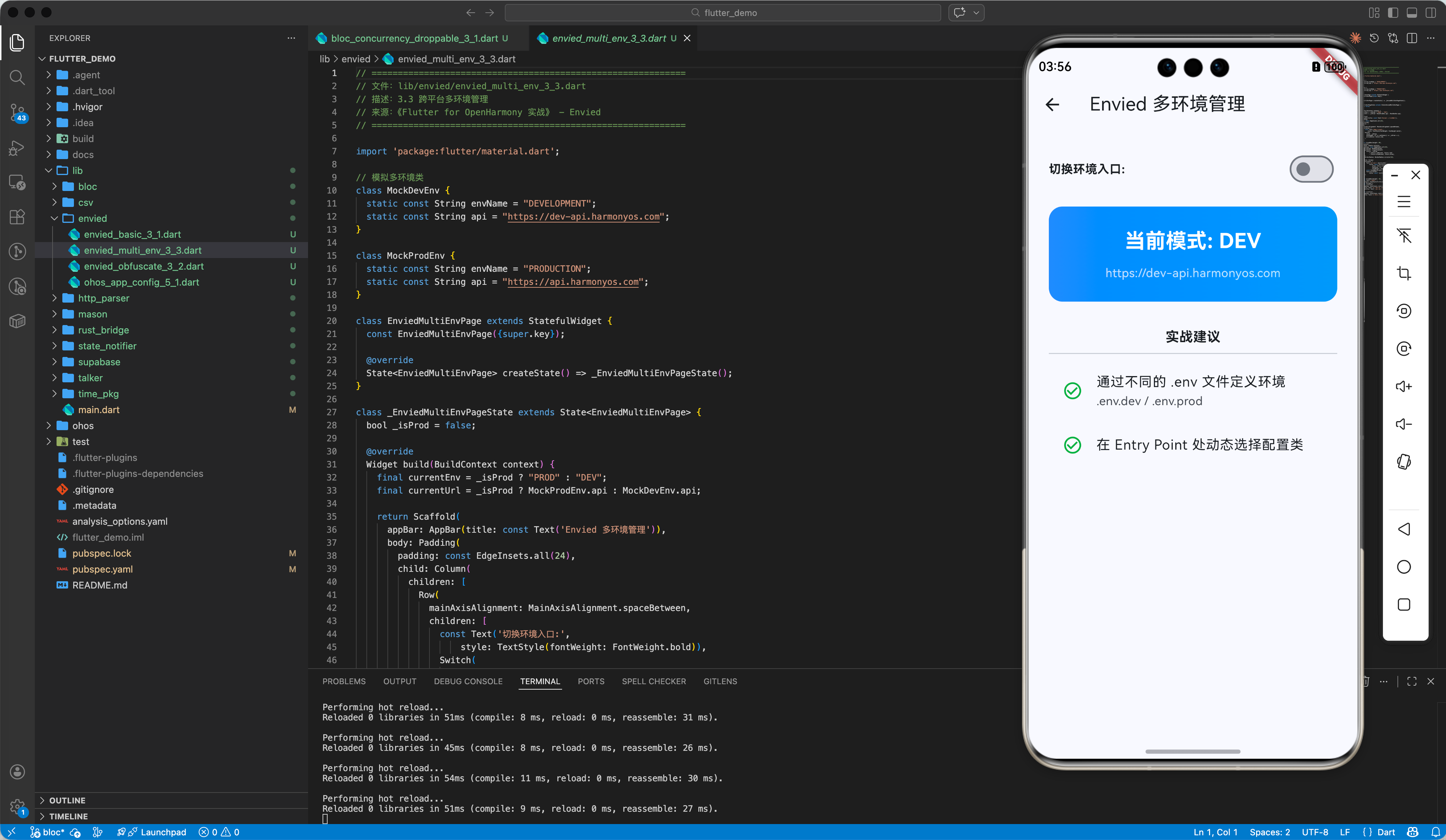 在研发、测试、上线(PROD)三个阶段,鸿蒙应用需要连接不同的服务器环境。Envied 让你可以通过切换 .env 文件,实现一键式的架构级环境变量热更替。