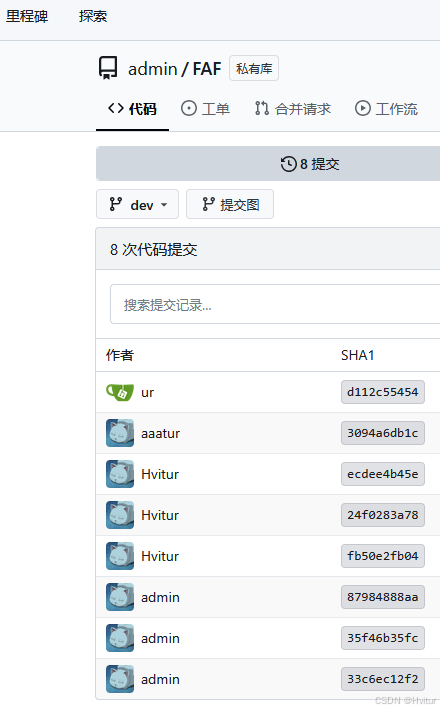 所以看提交记录还是要去主页面看,那里显示的是正常的用户名和头像