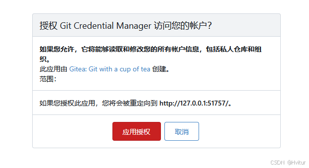 首次拉取时,会先弹出Gitea登陆的页面,登陆之后会让授权
