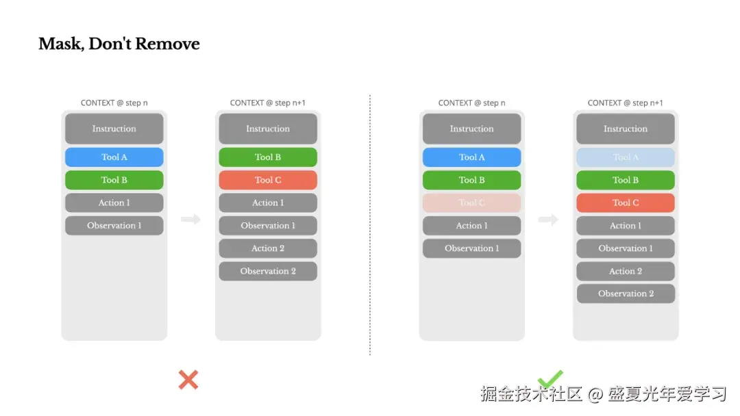 - KV缓存失效:动态添加/移除工具、时间戳变化等都会使缓存失效,导致成本飙升(Claude Sonnet缓存与未缓存成本差10倍)