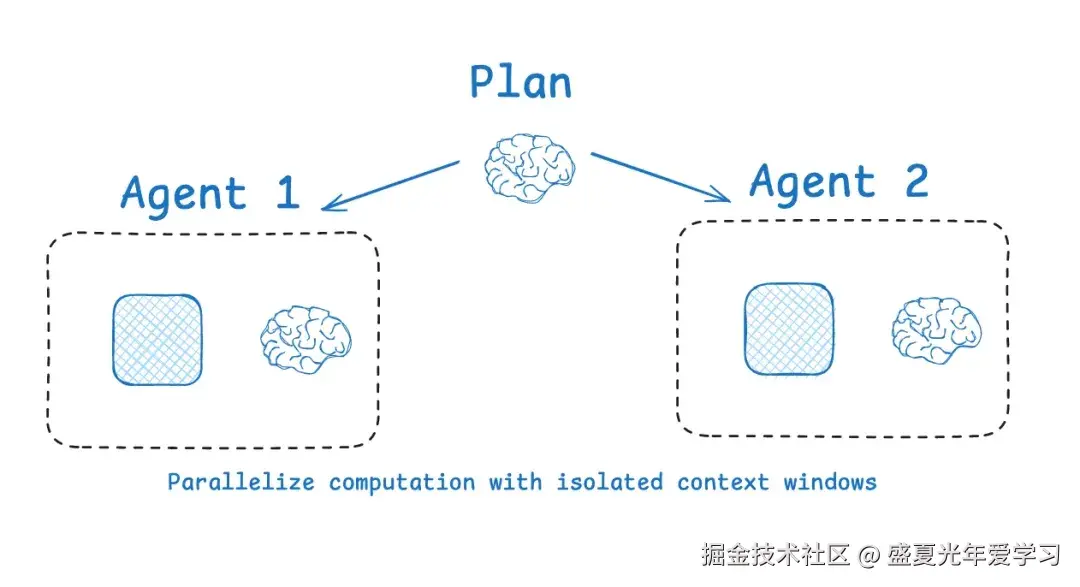非常类似 Workflow 时代的"分而治之"思想,如果一个任务的 context 压力太过巨大,我们就拆分一下,分配给不同的 sub agents 来完成各个子任务。这样每个 agent 的 context 内容都是独立的,会更加清晰和聚焦。