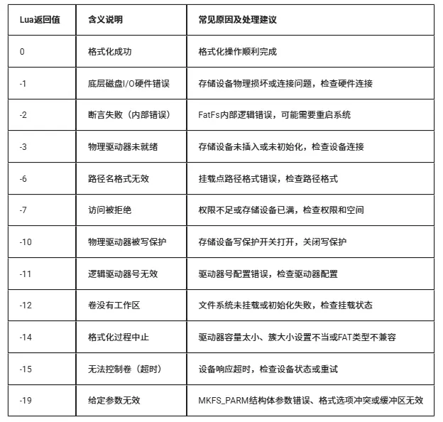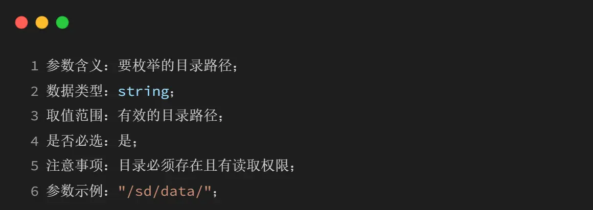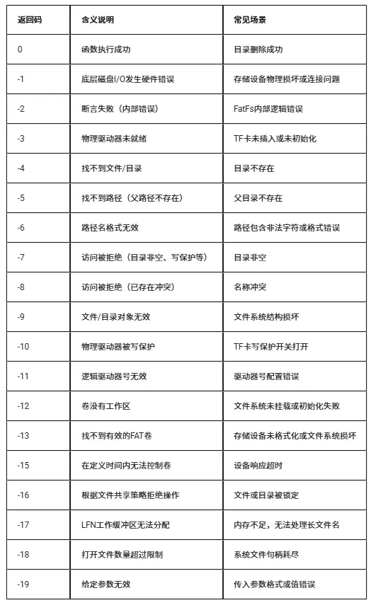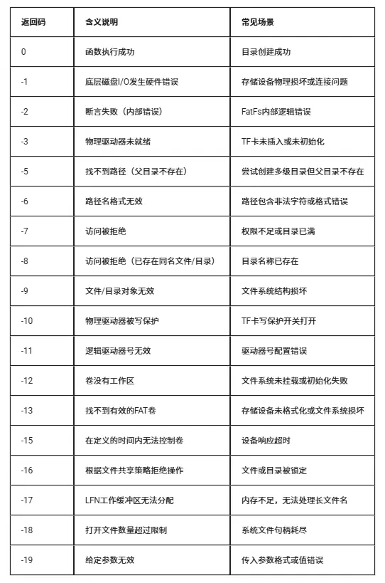 5、返回错误码的常见错误包括目录不存在(-5)、权限不足(-7)和参数无效(-19);