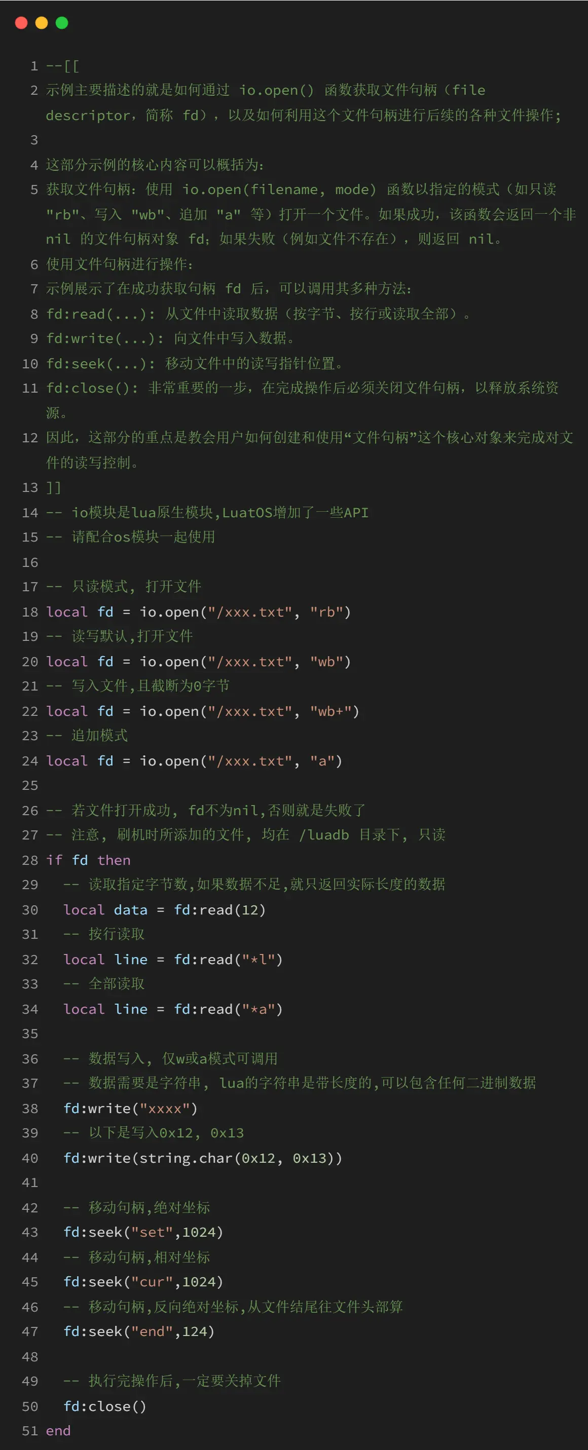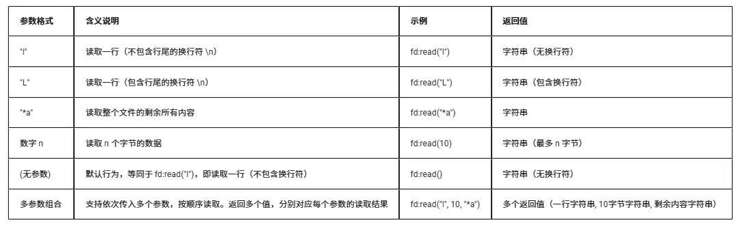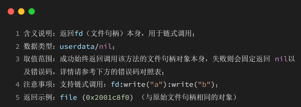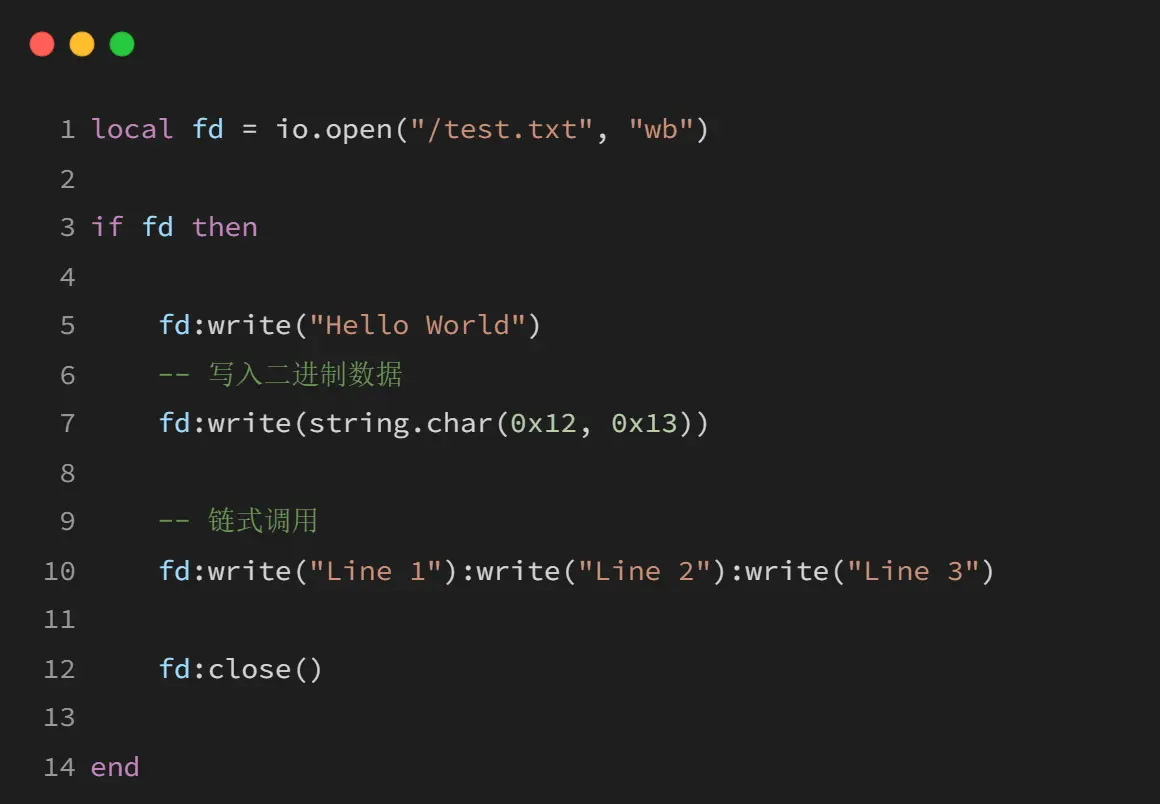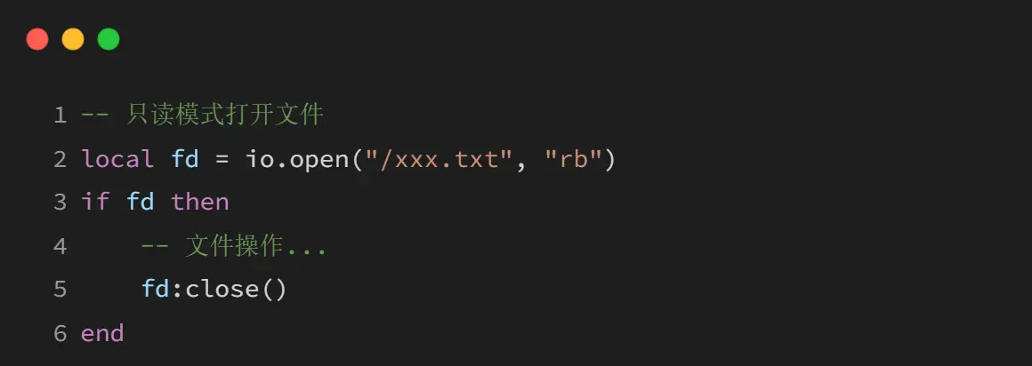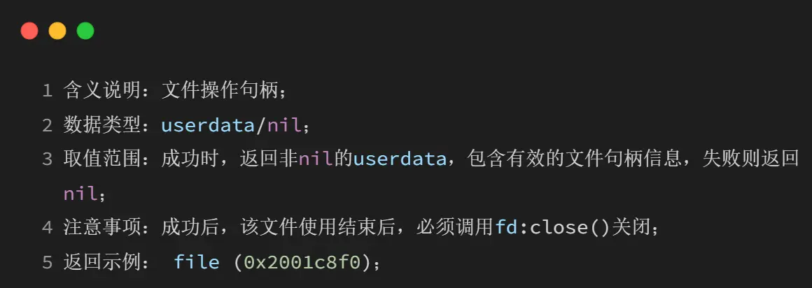 1、文件打开后必须调用fd:close()关闭;