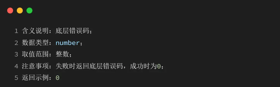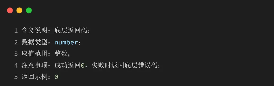 成功时有三个返回值 result 和 err_code