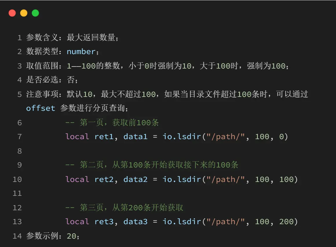 4.11 io.lsdir(path, max_cnt, offset)