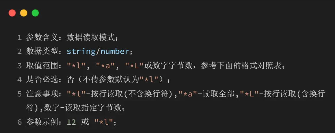 3、格式参数:"*a"(读取整个文件内容)