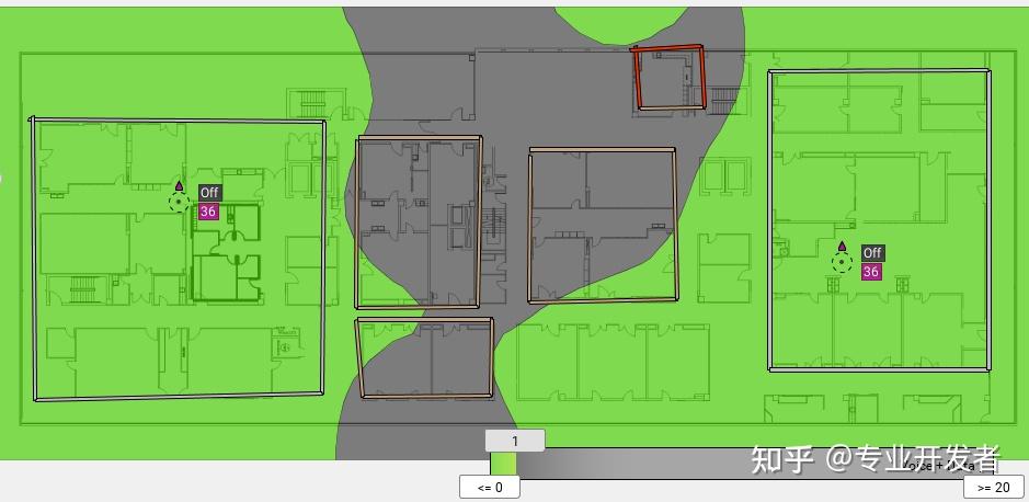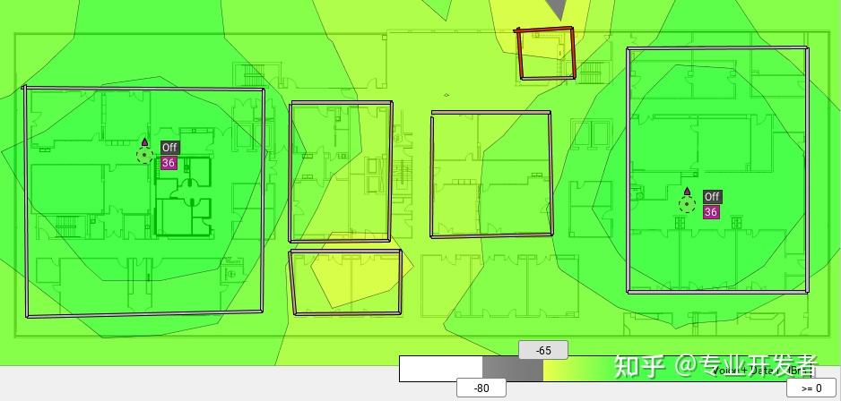 假设我们的目标覆盖区域信号强度要求是 - 65dBm,通过这两个接入点,我已经在该楼层实现了 - 65dBm 的目标覆盖。