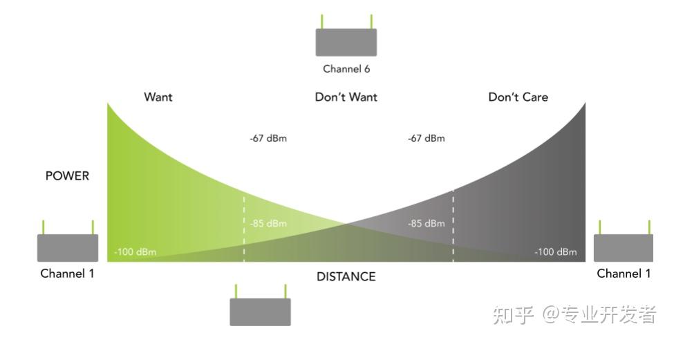我们再来谈谈无关紧要的区域。在这个区域内,射频信号依然存在,但强度低于设备的使用阈值,因此设备不会将其视为射频干扰,Wi-Fi 机制可以正常运行。