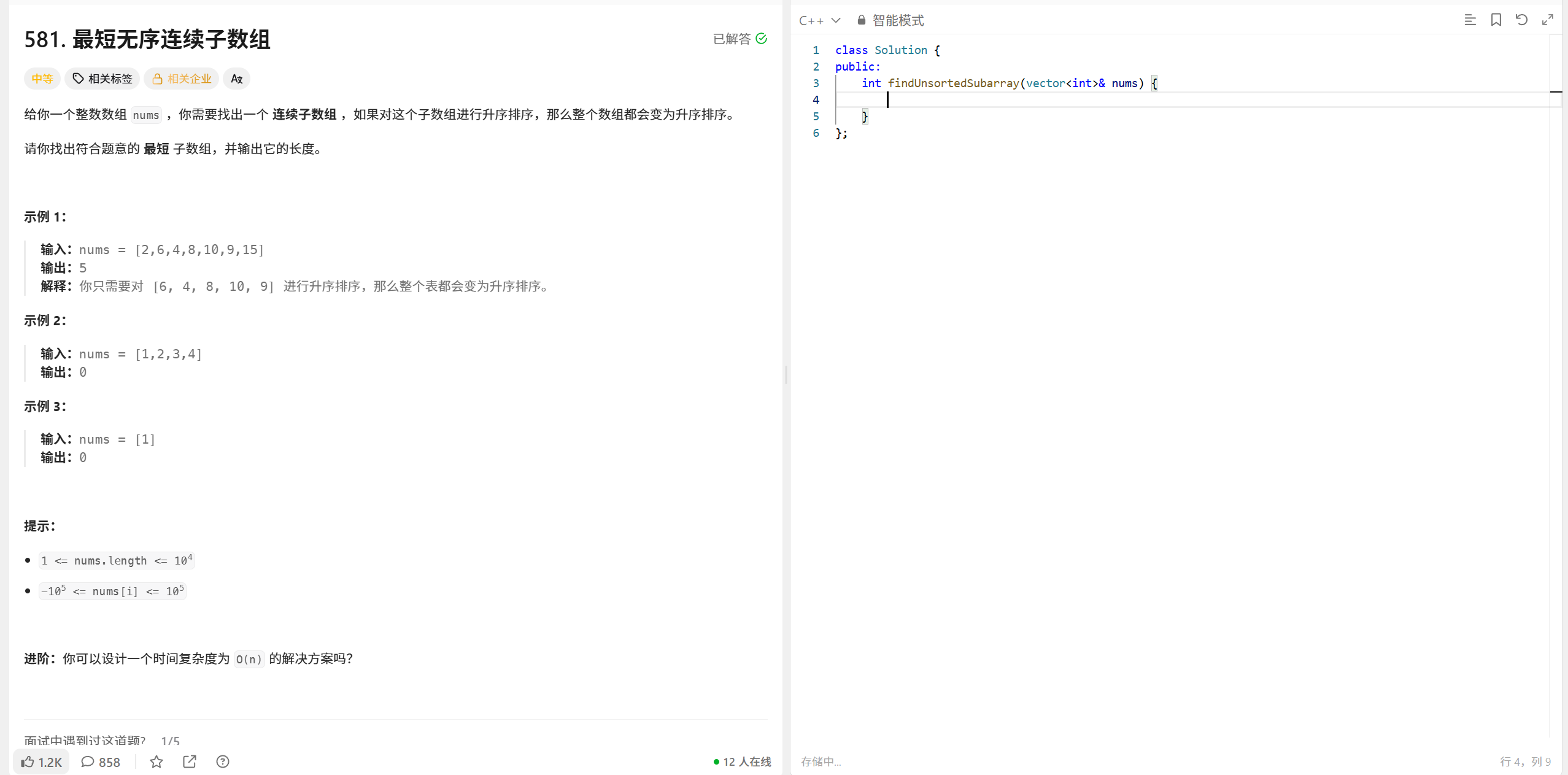 这个题,拿到手题目让我们找连续区间【l,r】。l一定大于l之前所有的数,r一定小于r之前所有的数。所以我们需要记录下一个当前最大数和最小数,同时还需要记录下区间的大小也就是left和right边界。