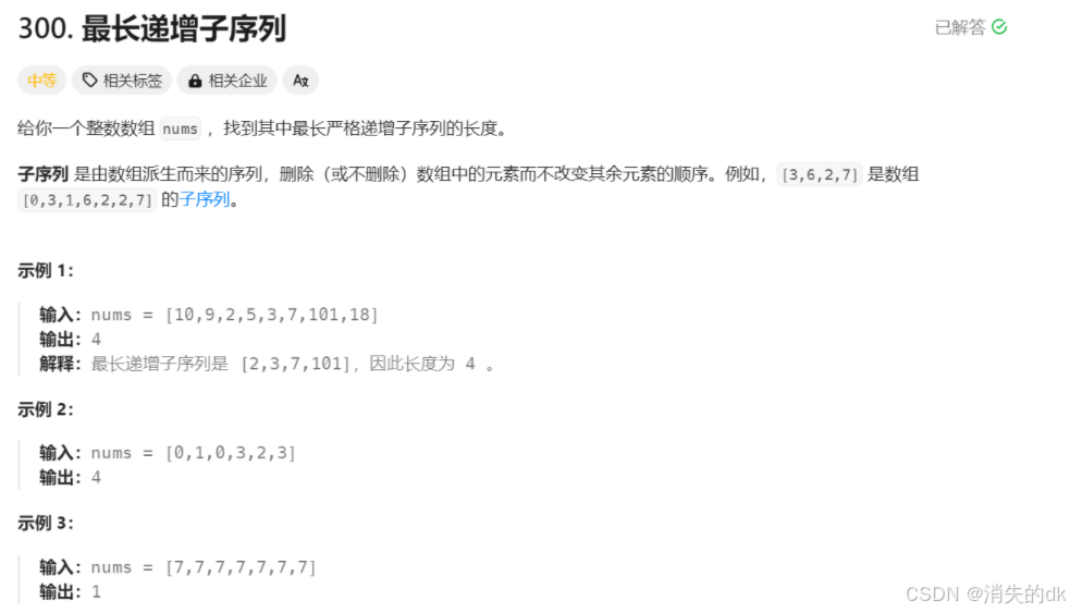//这里最大值不是dp[nums.size()-1],因为最大递增序列不一定是以最后一个结尾,所以需要遍历每个元素,以每个