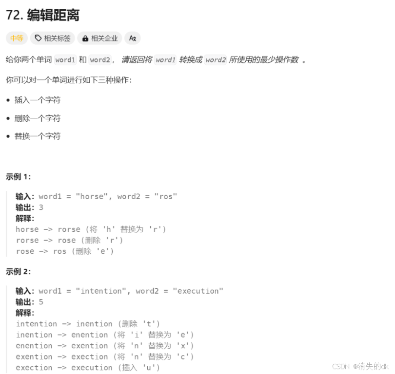 唯一与上一题不同的是,加了插入和替换,插入与删除同样的操作,替换为dp[i] [j] = dp[i-1] [j-1]+1
