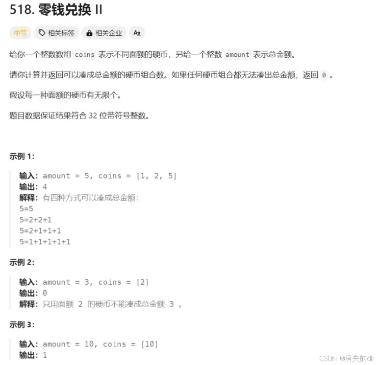 dp[j] 就是所有的dp[j - coins[i]](考虑coins[i]的情况)相加。