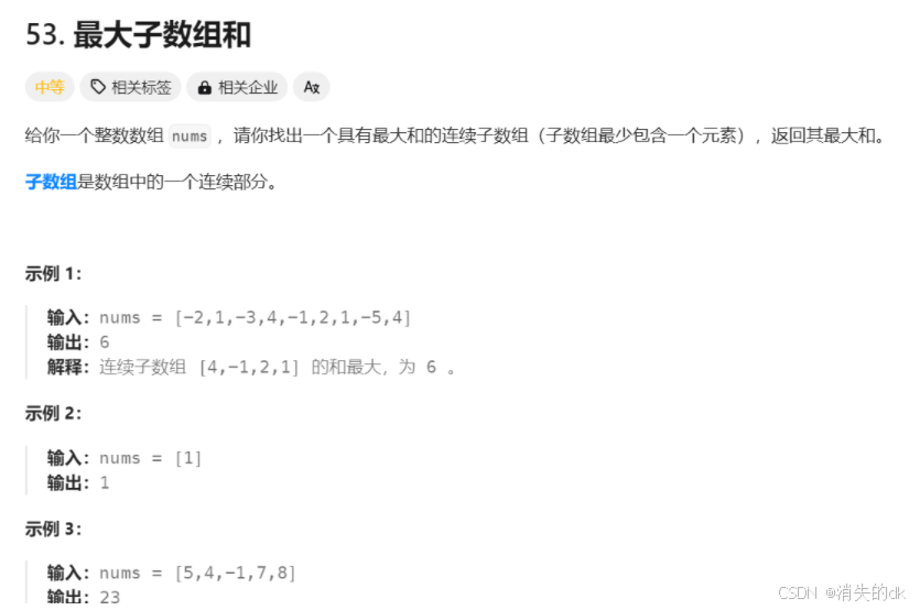 题目要我们找出和最大的连续子数组的值是多少,「连续」是关键字,连续很重要,不是子序列。