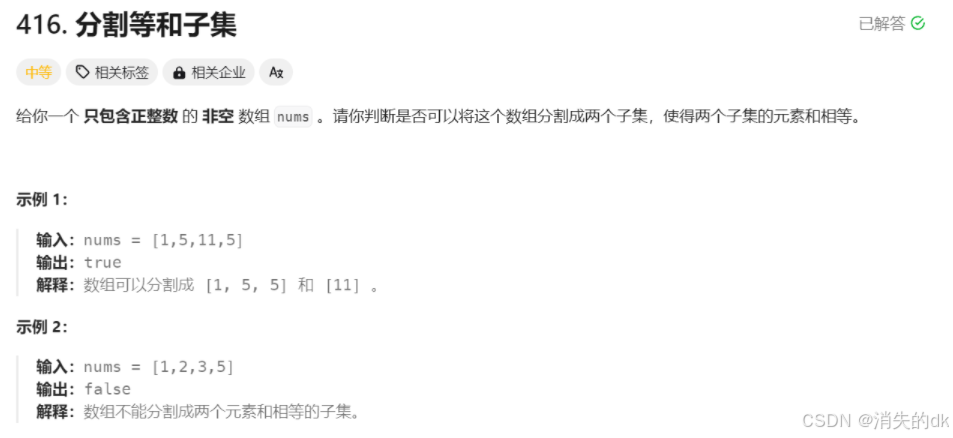 例如:dp[j],j 为5, 已经有⼀个1(nums[i]) 的话,有 dp[4]种⽅法 凑成 容量为5的背包。 已经有⼀个2(nums[i]) 的话,有 dp[3]种⽅法 凑成 容量为5的背包。 已经有⼀个3(nums[i]) 的话,有 dp[2]中⽅法 凑成 容量为5的背包 已经有⼀个4(nums[i]) 的话,有 dp[1]中⽅法 凑成 容量为5的背包 已经有⼀个5 (nums[i])的话,有 dp[0]中⽅法 凑成 容量为5的背包