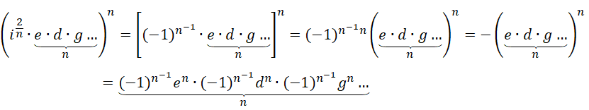 这种形式会导致至少一项的系数分配到的虚数单位的幂次非整数,而是某种 0 到 1 之间的残留余量,而且这个幂次是负的。假定分配方式为,