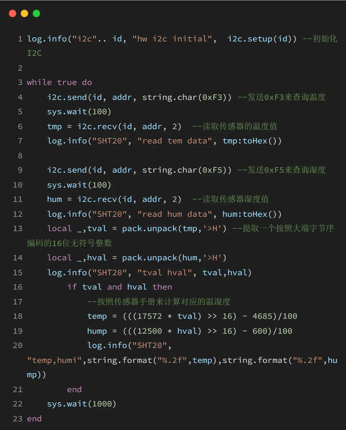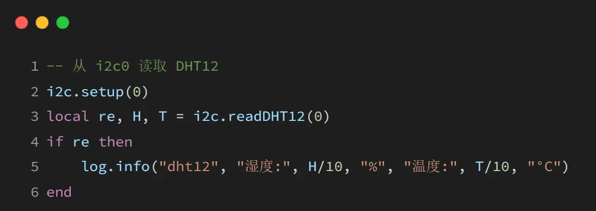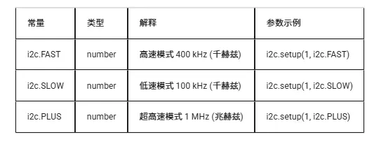 LuatOS 提供了 I2C 核心库,支持硬件 I2C 和软件模拟 I2C 两种方式,可以方便地与各种 I2C 设备进行通信。